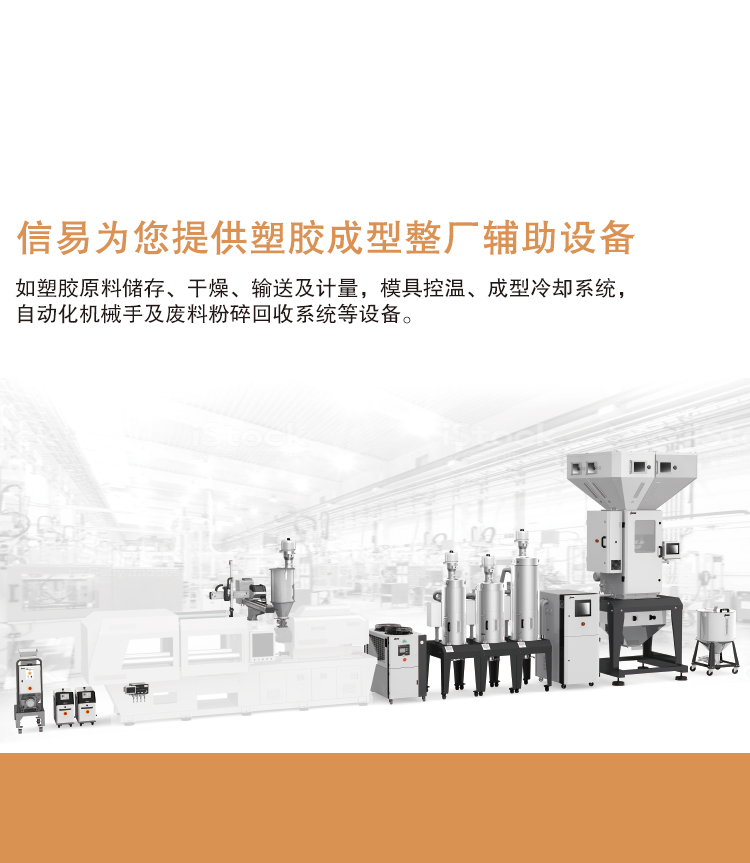 除濕干燥系列產(chǎn)品(包括熱風(fēng)干燥機(jī)及除濕干燥機(jī)),為塑料成型原料的干燥提供有力的保證。可提供-40℃及以下露點(diǎn)的穩(wěn)定除濕效果和最大每小時(shí)1,000公斤的干燥原料(以PET為例)供應(yīng)能力。